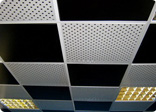 - Ячеистые подвесные потолки. Рельефное покрытие в виде сплошной решетки из алюминия идеально для работы системы пожаротушения. Еще одно его преимущество — естественная вентиляция и современный дизайн в стиле хай-тек. Такие параметры делают его незаменимым в местах массового скопления людей.