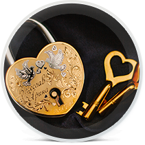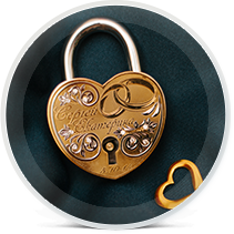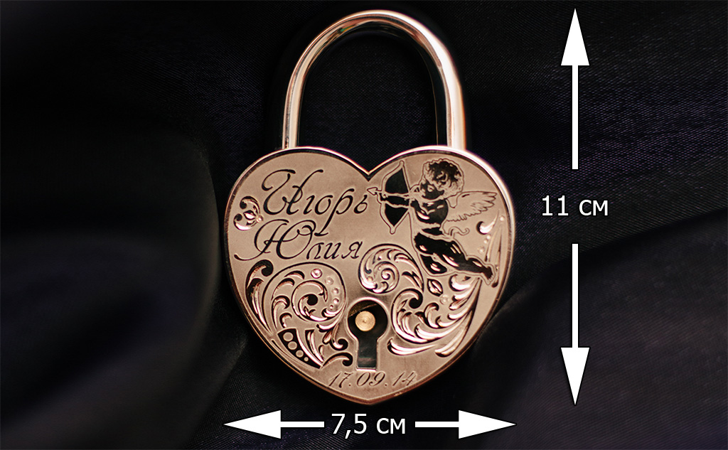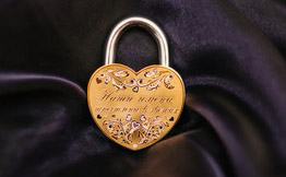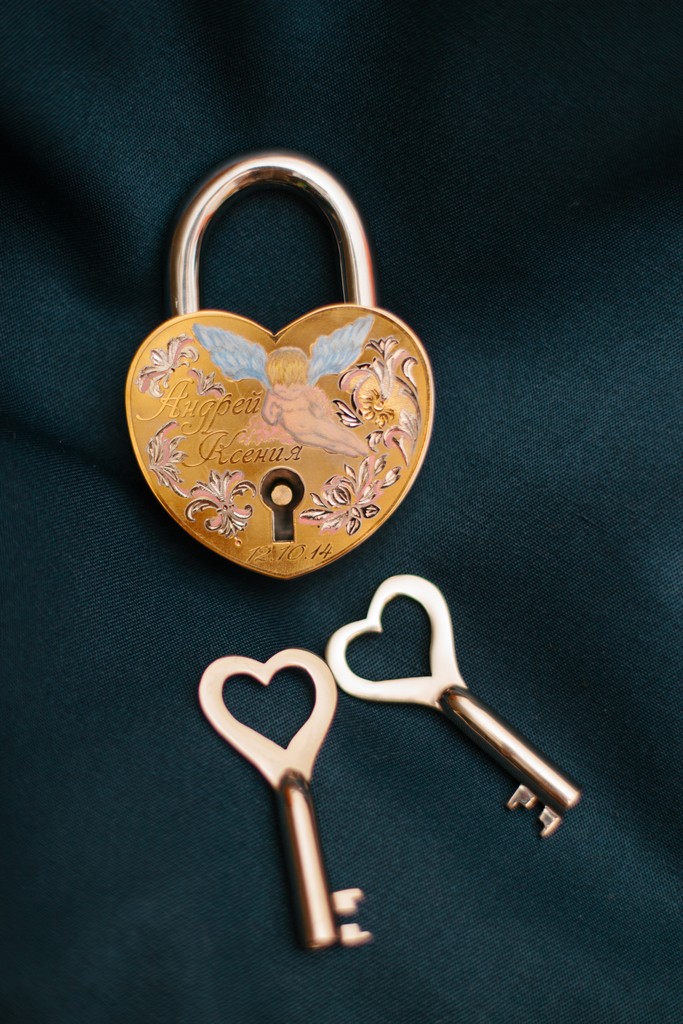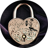 Заказывайте свадебный замок и вложите энергию вашего чувства в материальный символ, который будет напоминать о силе любви каждый день. Выбросьте ключ! Но поставьте красивый сверкающий драгоценностями и вашими именами замок на самое видное место.